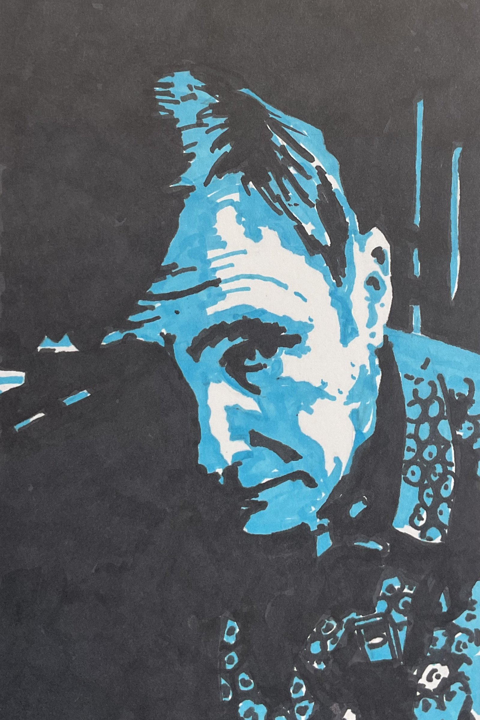 I went with blue as Gary’s second colour. Was that an error or was it genius? I don’t know but it’s added to the emotional content of this one, turning what was a serous look into quite a melancholy portrait. Just as with all the other portraits in the collection inboxes personality. But I’m getting ahead of myself. I’ll talk about the collection in the next post.