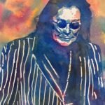 It might be one of my weaker recent posterised portraits. Despite me using a grid to get down some starting pencil outlines, the likeness isn’t 100% there: his forehead and chin both feel slightly too big. On the other hand, it’s unmistakebly Sean thanks to the tiny wrinkles just above the top rim of his glasses. Careers thrive or die on such slim margins.