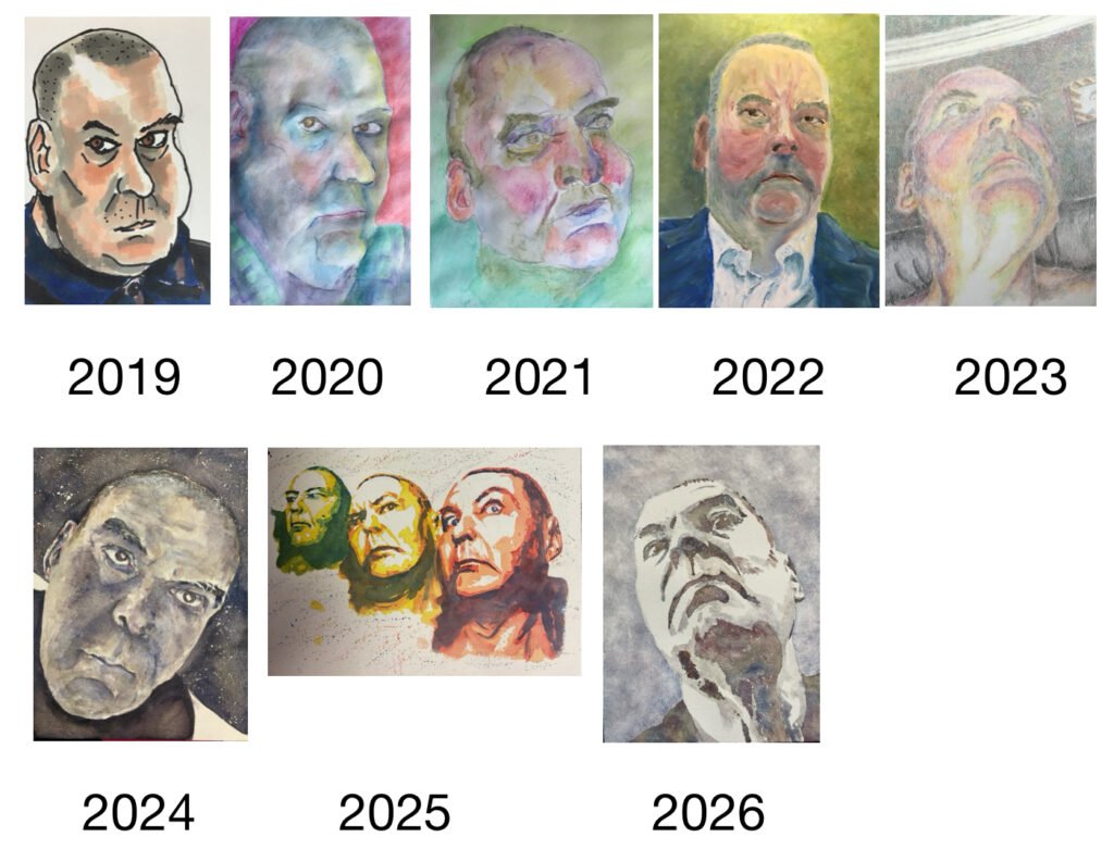 And, yes, I’m happy with the final result. This will be my 2026 self portrait and my PAOTY entry. It’s statuesque, it’s a pose with attitude but with a tiny bit of fear in the eyes. I can see. But of Paddy McGuinness in there and a bit of Frankenstein’s monster where the sky hasn’t come all the way down to the head in the top left. But this is a painting, not a photo. Good paintings are all about expressing feelings, telling stories and capturing essence. This is a good painting. I’m happy.