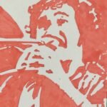 The second layer of paint was the usual French ultramarine. With there not being many highlight shapes in the face, this layer was needing to do a lot of the heavy lifting in creating a portrait from chaos. And when the masking fluid came off, it was clear that it had fallen short of expectations. It was ambitious of me to have most of the mouth in shadow and, when I stood back from the painting, it was difficult for my brain to fill in the missing oral details. So I tinkered, lifting off some French ultramarine, adding more red above the mouth, adding white gouache highlights and darkening the inside of the mouth by adding more of the French ultramarine, Nothing worked and I’ve ended up with Tom having a light blue upper lip and some vivid red on the face, neither of which fit with the rest of the painting.
